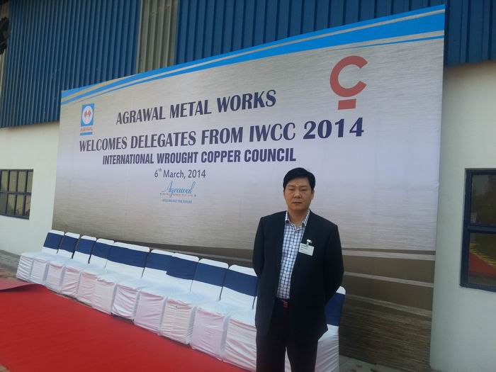 2014年IWCC(國際銅加工協會)技術年會于3月2日至7日在印度孟買舉行,出席會議的包括IWCC會員單位,國際銅加工行業中的高端技術型企業,公司總經理駱偉棟先生應邀參加此次盛會。2014年IWCC技術年會現場 本次年會主題為“軋制板帶材及其他產品”,圍繞印度銅板帶材的鑄造、軋制、熱處理以及銅帶的電鍍等技術展開交流,會議期間各國銅加工企業還就當今行業中最新的銅加工技術和科技新產品進行了研討。參會代表們參觀了印度生產板帶材產品的企業:Rashtriya板帶廠、梅塔銅管廠和阿哥拉瓦爾五金廠,紫銅/黃銅汽車散熱器廠和黃銅鎖鑰廠,充分展示了印度軋制板帶先進的加工工藝。總經理駱偉棟應邀參加IWCC年會